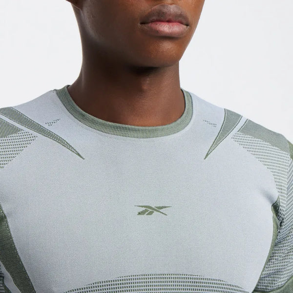 Engineered for high-intensity workouts, this T-shirt is cut from a breathable, seamless knit fabric. Its sleek silhouette is adorned with logos and Vector-inspired panelling for a dose of Reebok spirit.