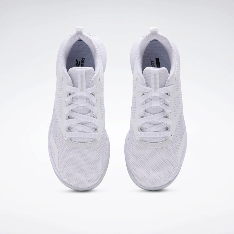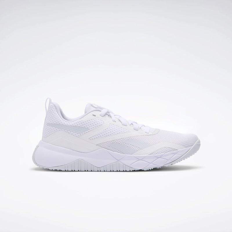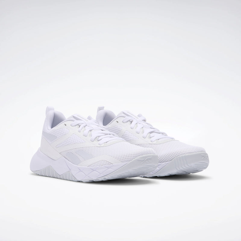 The Reebok NFX Trainer is the ‘Good’ to our Nano’s ‘Best’—a versatile training shoe designed to carry you comfortably from everyday errands to high-energy workouts. Built with a focus on Reebok’s iconic design DNA and all-day comfort, this shoe delivers dependable performance at a key price point. The breathable mesh upper offers lightweight support, while the durable rubber outsole ensures solid traction through every movement. Finished in a clean white and soft moon white colorway, it brings a fresh, understated look that pairs effortlessly with your active lifestyle.