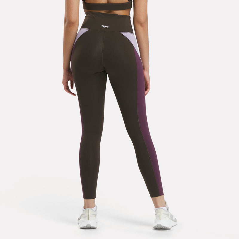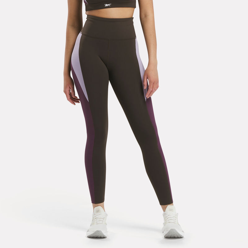 Sleek and supportive leggings with a secure and flattering fit/These Reebok womens's Lux High-Rise Colorblock Leggings transition seamlessly from your workout to the rest of your day. A wide, high-rise waistband hugs you in for a secure and flattering fit. Made in our performance Nylux fabric with a soft, cotton handed feel. RBK-DRY technology helps wick away sweat and keeps you dry in spin class or the weight room. RBK-FRESH in the gusset helps eliminate odor so you're ready to power through even when body heat builds. Color blocked panels at the sides add a pop of color.