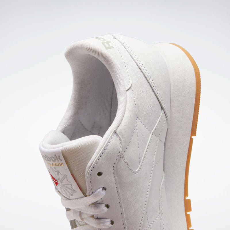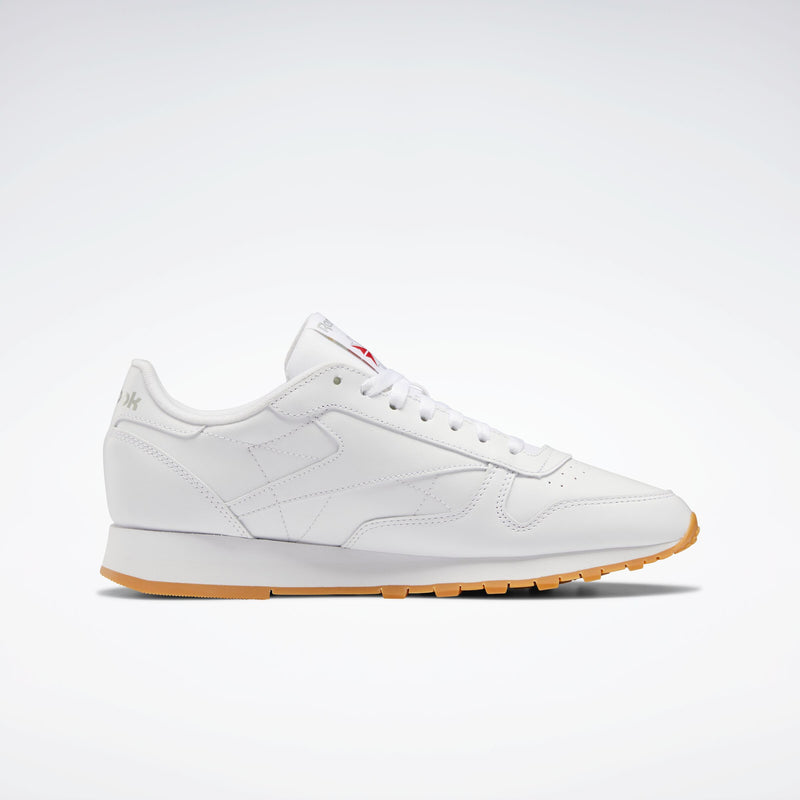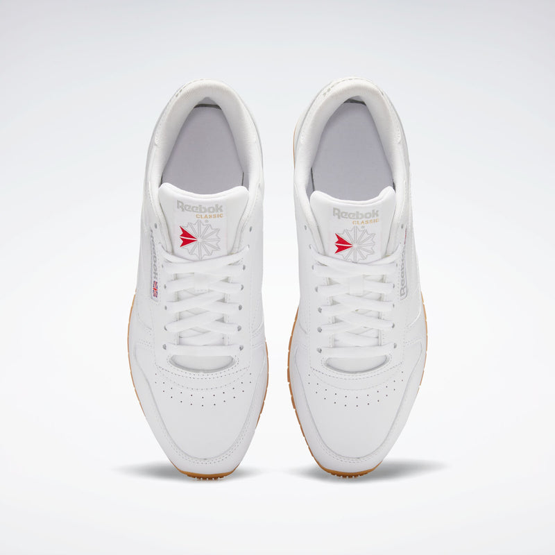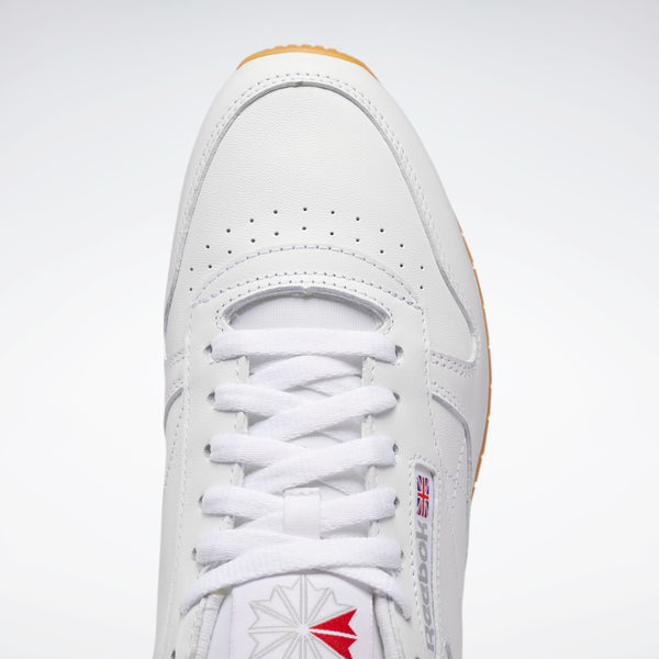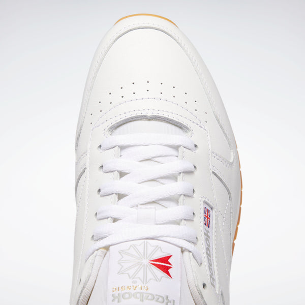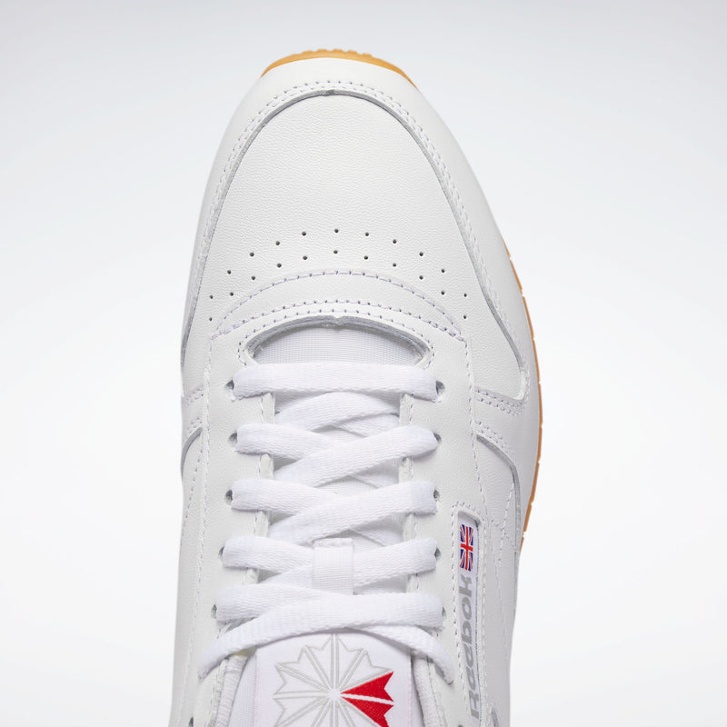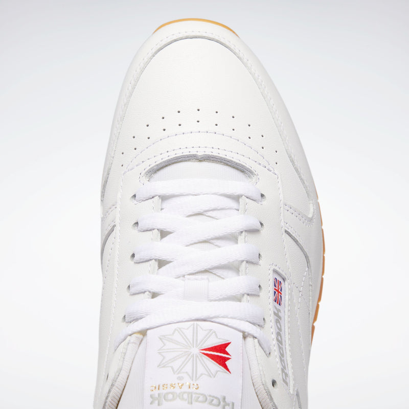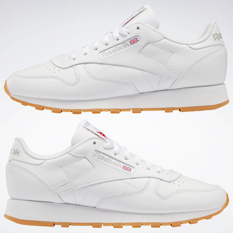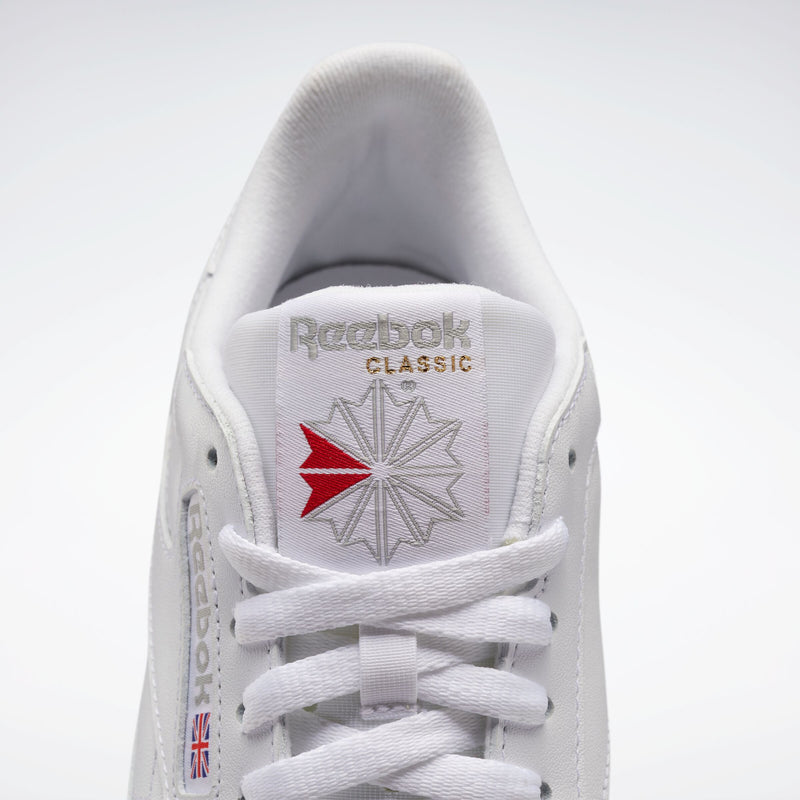 RETRO-INSPIRED SHOES WITH A UNION JACK LOGO. Clean, minimalist design keeps your look forever fresh. These Reebok Classic Leather Shoes update the iconic retro style. A supple leather upper and logos pulled from the archives give you trainers that always work, no matter what you pair them with.