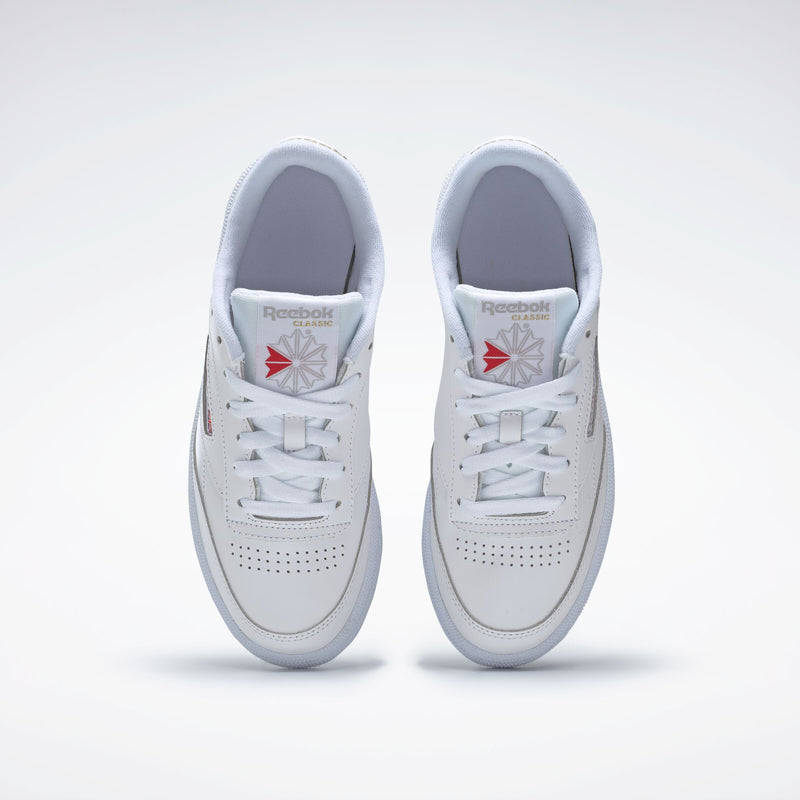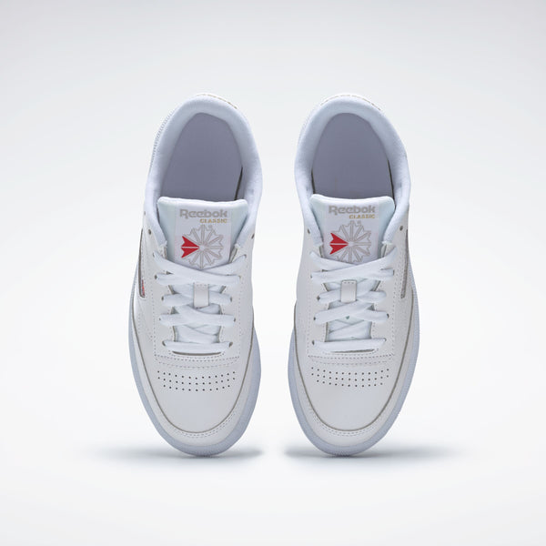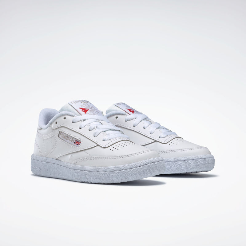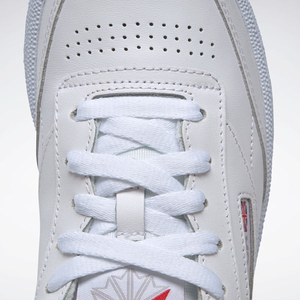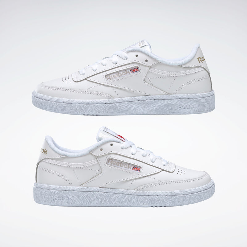 THE REBIRTH OF A CLASSIC SNEAKER. There's nothing quite like a fresh white sneaker, and the Club C 85 is the original. Clean white leather keeps these women's shoes on point and matches any trendy look. The durable outsole makes the look last while a classic logo on the side pays homage to our roots.