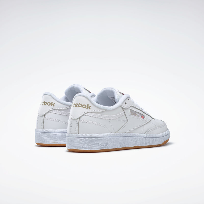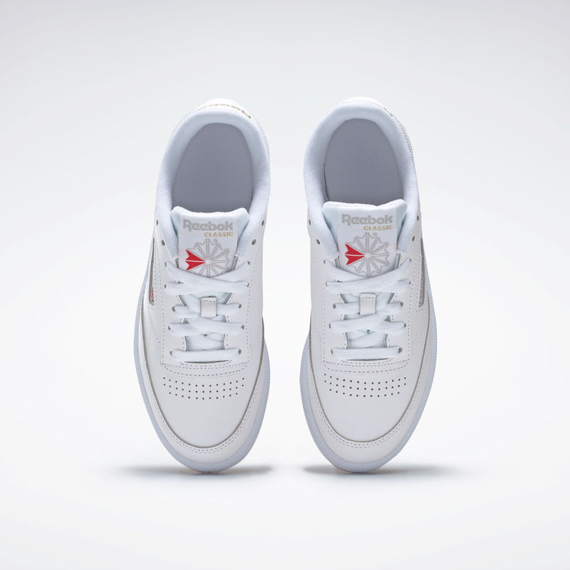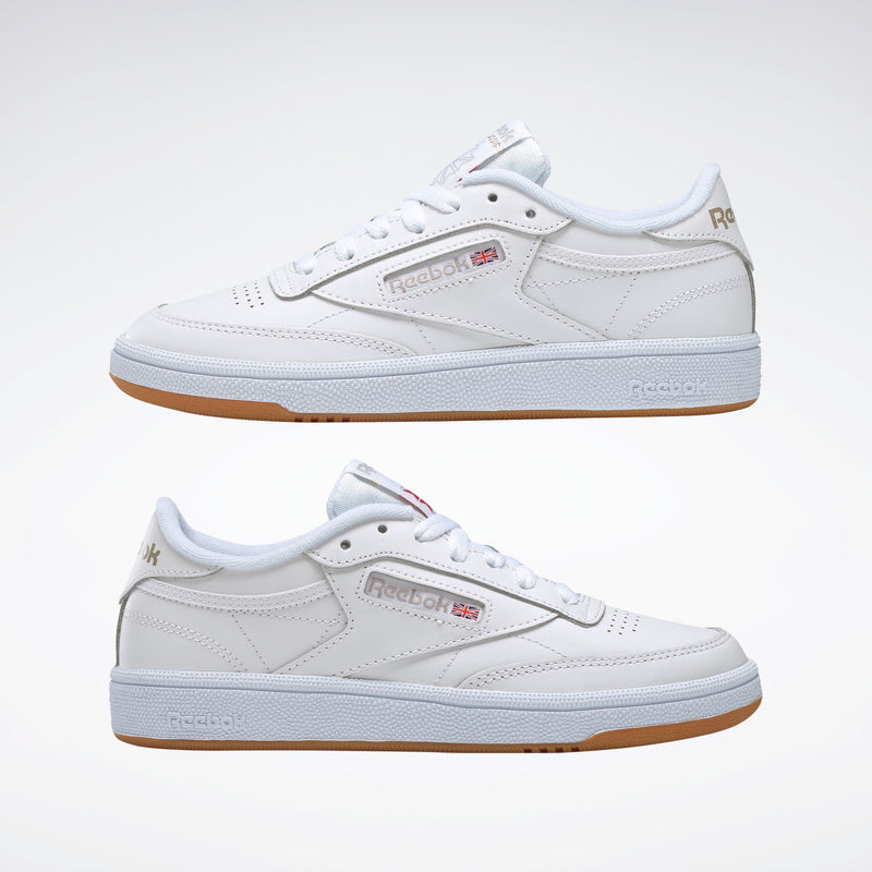 THE REBIRTH OF A CLASSIC SNEAKER. There's nothing quite like a fresh white sneaker, and the Club C 85 is the original. Clean white leather keeps these women's shoes on point and matches any trendy look. The durable outsole makes the look last while a classic logo on the side pays homage to our roots.