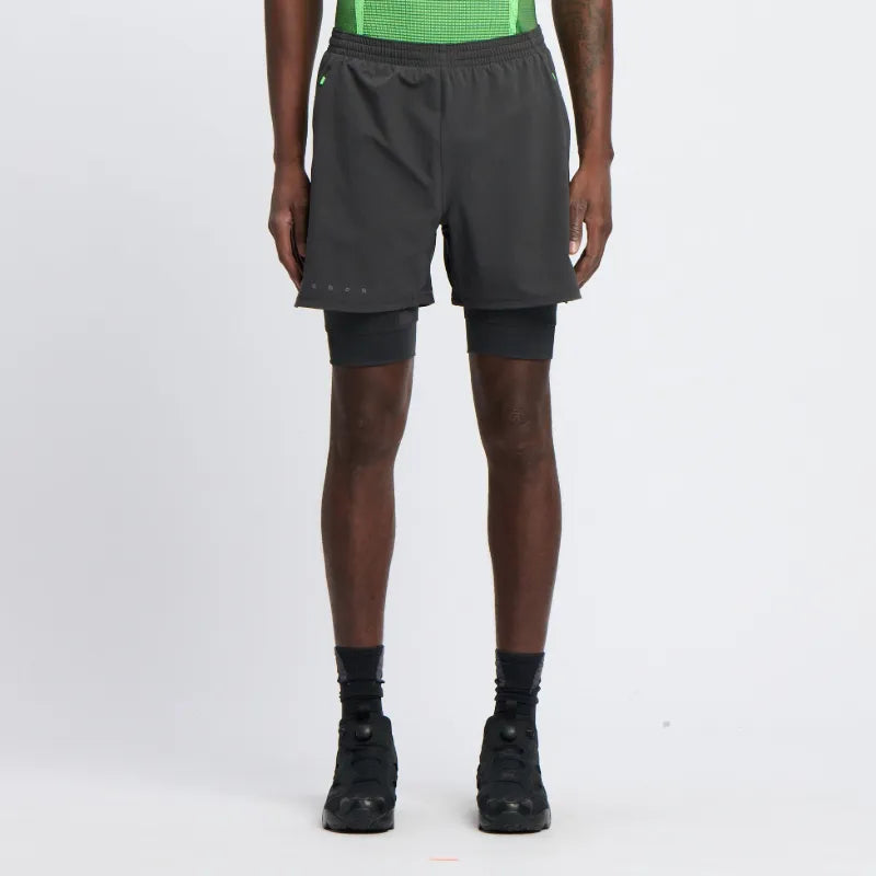 Zaprojektowane z myślą o osiąganiu najlepszych wyników, te szorty zostały wykonane z rozciągającej się w czterech kierunkach tkaniny wykończonej trwałą, odprowadzającą wodę powłoką DWR. Wbudowane kompresyjne szorty zapewniają dodatkowe wsparcie, a odblaskowe detale zwiększają Twoją widoczność w warunkach słabego oświetlenia.